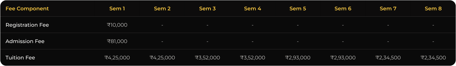 Batch 2026–2030. Does not include hostel, mess, and bus fees.